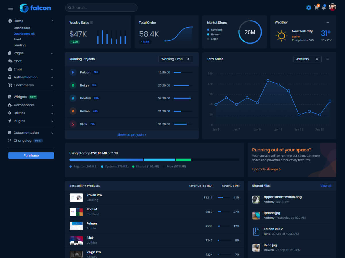 Get Falcon now and create beautiful dashboards with hundreds of widgets.